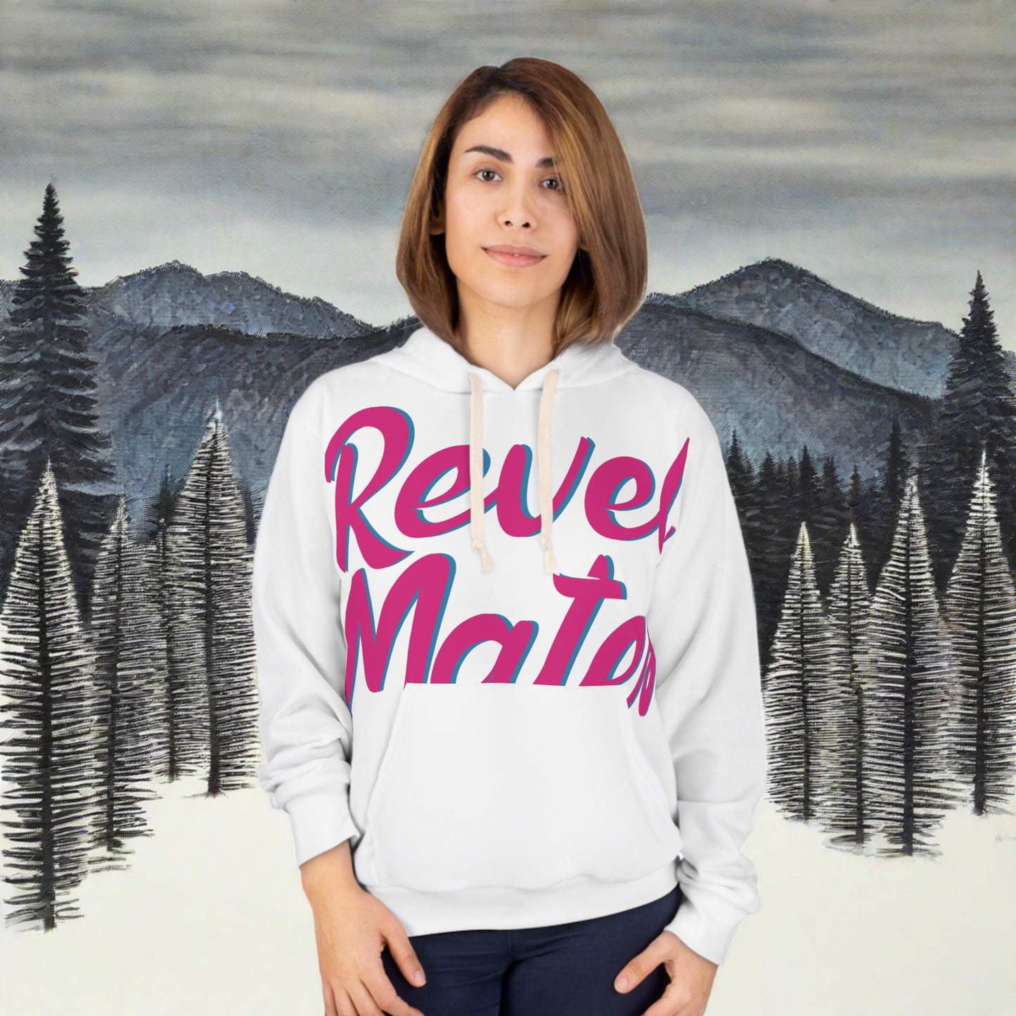Unisex Cut & Sew Pullover Hoodie | All Over Print Hoodie | White & Fuchsia RevelMates Design